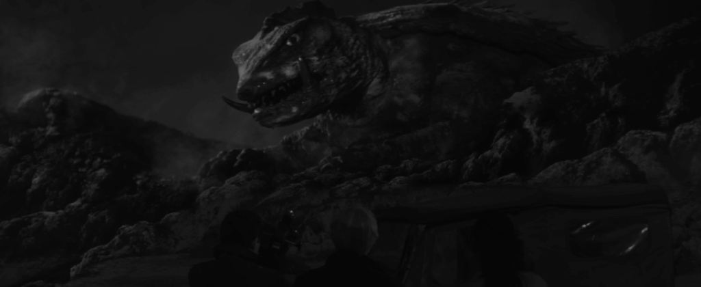 Gamera contre Barugon –Daikaijū kettō: Gamera tai Barugon (1966) : Une petite île dans le sud du Pacifique. Quatre aventuriers trouvent une opale. L’un seul survit aux dangers de la jungle et ramène la pierre précieuse au Japon. Bientôt, les scientifiques découvriront qu’il s’agit en fait d’un oeuf de lézard. Soumis aux radiations, le petit animal se transforme en monstre géant. Surnommé « Barugon », il émet une raie de lumière destructrice et attaque le pays. Gamera, un autre géant qui s’est échappé de sa prison spatiale, revient sur Terre afin d’aider les humains dans leur combat…