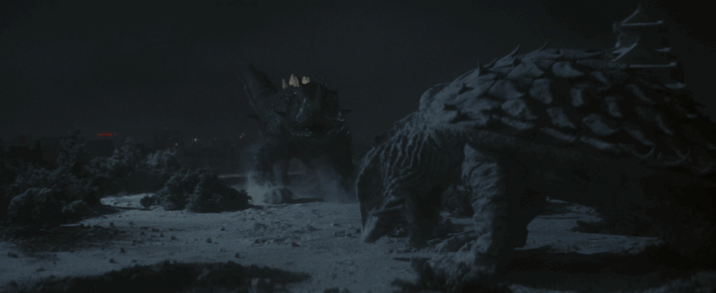 Qu’à cela ne tienne, Gamera revient quand même en 1967, en replaçant un jeune garçon au centre de l’histoire. Cette fois, Noriaki Yuasa hérite de l’intégralité de la mise en scène et s’en tire encore formidablement, même si le budget a lui aussi été revu à la baisse par rapport au précédent. Mais il n’est pas interdit de préférer Barugon à Gyas, le second étant moins réussi plastiquement parlant avec sa tête à angles droits et sa difficulté à se mouvoir. Les deux premières suites reprennent plus ou moins le même canevas, tout en installant Gamera comme un défenseur de la race humaine, mise à mal avec d’étranges monstres géants, par ailleurs souvent réveillés à cause de l’humanité ou d’événements naturels. Après l’impressionnant épisode 2, Shigeo Tanaka passera de nouveau le relais à Noriaki Yuasa, qui de don côté s’occupera de Gamera jusqu’au début des années 1980, le faisant s’affronter à Viras, Guiron, Jiger et Zigra.