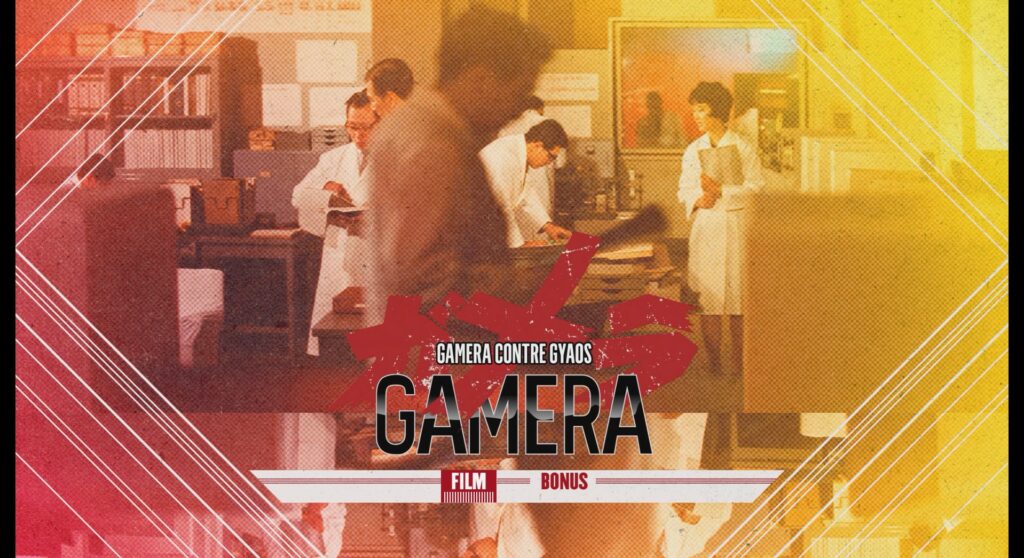 Magnifique, sublime…Le coffret Gamera : Les années Showa – Volume #1 présenté par Roboto Films, en Blu-ray comme en UHD est un des plus beaux récement sortis dans les bacs français. Le très épais fourreau cartonné au visuel électrique comprend trois Digipacks fins, somptueusement illustrés, ainsi que dix photos cartonnées reprenant des scènes centrales provenant des trois films, un poster créé à l’occasion (où Gamera apparaît avec Barugon et Gyaos) par Kevin West et Carlos Cabrera, d’ailleurs repris pour le fourreau, sans oublier, comment serait-ce possible, un remarquable livret de 60 pages. Cet essai signé Jordan Guichaux, co-créateur avec Fabien Mauro de la web-émission Toku Scope, auteur de Ishiro Honda : Humanisme Monstre (Editions Rouge Profond) et de Kaiju, Envahisseurs et Apocalypse paru en octobre 2020 chez Aadvark éditions, revient sur les trois films qui nous intéressent aujourd’hui (et même sur l’après-trilogie Showa), autrement dit sur la naissance de Gamera et sa mythologie. Vous saurez tout sur la naissance de la tortue volante “assoiffée” de feu, sur les conditions de production des trois premiers volets, sur la réalisation des effets spéciaux, sur le casting, sur l’évolution de la saga, les partis-pris et les intentions des producteurs également. Un bel objet de collection. Les menus principaux de chaque disque sont animés et musicaux. Après le coffret Gamera – La Trilogie Heisei (1995, 1996, 1999), Roboto Films signe donc une nouvelle grande réussite éditoriale.
