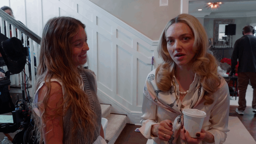 On démarre avec deux commentaires audio, présentés avec les sous-titres français. Le premier est dispensé par Paul Feig, seul en piste, tandis que sur le second le réalisateur se trouve accompagné par Laura Fischer (productrice), Carly Elter (productrice exécutive), Todd Lieberman (producteur), John Schwartzman (directeur de la photographie), Theodore Shapiro (compositeur), Brent White (monteur), Allison Jones (directrice de casting) et (sur Zoom) Rebecca Sonnenshine (scénariste), Elizabeth Jones (chef décoratrice) et Renee Ehrlich Kalfus (costumière). Quitte à choisir, sélectionner celui où le cinéaste est le seul à la barre, puisque l’aspect y est moins bordélique et les arguments sont exactement les mêmes, parfois au mot près. Certes, Paul Feig a l’air de prendre du bon temps avec ses camarades de jeu, mais il se disperse forcément moins sur le premier commentaire. Généreux, pour ne pas dire bavard, Paul Feig passe tout en revue, l’adaptation, les partis-pris, ses intentions, la création des décors, des costumes, les conditions de tournage (200 scènes emballées en 34 jours), le choix de la maison principale et bien sûr son boulot avec les acteurs, sur lesquels il ne tarit pas d’éloges. La genèse du projet, les choix faits pour l’adaptation du livre de Freida McFadden, les scènes coupées (disponibles en bonus) sont aussi les sujets abordés au fil de ces deux commentaires. « Voilà, vous savez tout ! » n’arrête pas de dire Paul Feig. On ne saurait mieux dire.
