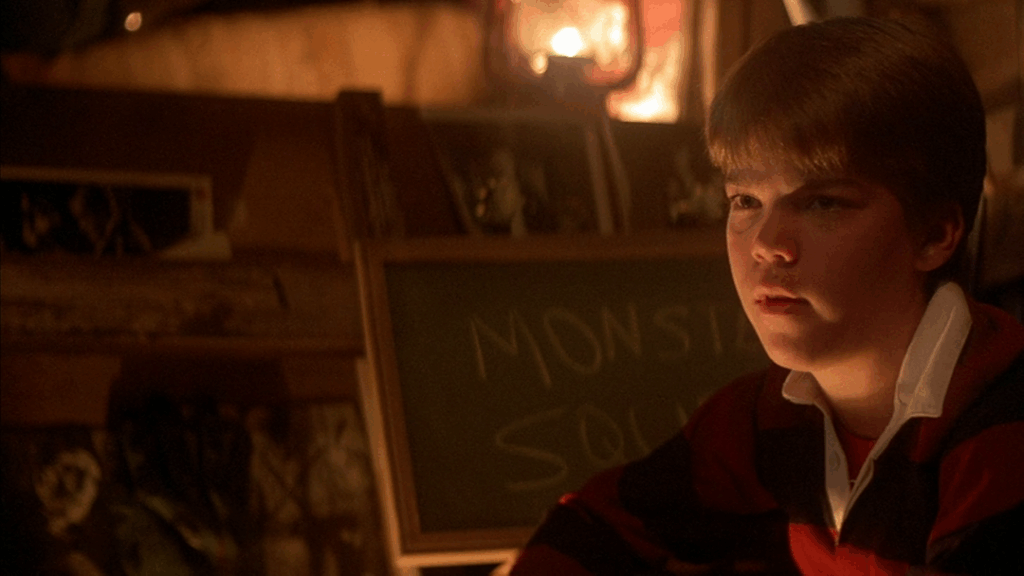 Quarante ans plus tard, The Monster Squad conserve ce charme inaltérable des films des années 1980 avec les gosses perchés sur leur vélo ou sur un skateboard, la coupe en brosse, se réunissant dans une cabane ou dans la chambre (souvent le QG de la troupe) de leur leader, une bande souvent constituée de celles et ceux laissés de côté par les autres, car jugés « étranges », étrangers aux codes en vigueur, n’arrivant pas ou ne désirant pas se fondre dans le moule. Et puis soyons honnêtes, cela fait du bien de revoir ce genre de film où les protagonistes ne sont pas plongés dans leur téléphone et préfèrent papoter de vive voix, face-à-face, ou en se promenant le long des trottoirs fraîchement tondus et les palissades immaculées. Le décor est vite planté, la dimension fantastique aussi, les héros installés. Ceux-ci sont campés par des acteurs dont les noms ne diront pas grand-chose de ce côté de l’Atlantique comme Andre Gower (Sean, toujours en activité), Robby Kiger (Patrick), Brent Chalem (Horace, décédé en 1995 d’une pneumonie, à l’âge de 22 ans), Ryan Lambert (Rudy), Ashley Bank (Phoebe), Michael Faustino (Eugene), tous impeccables et qui tiennent la dragée haute à leurs aînés monstrueux, notamment Duncan Regehr (Dracula) et surtout le regretté Tom Noonan, disparu il y a dix jours, génial dans la peau recousue et boulonnée de la créature de Frankenstein.