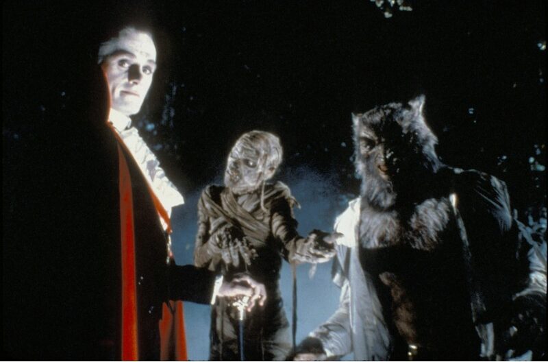 Mais…mais…d’où sort ce film ? Comment un tel divertissement a-t-il pu passer sous les radars en 1987 ?? Pourquoi n’avions-nous jamais entendu parler de The Monster Squad quand nous étions gamins dans les années 1980-90 ??? Deuxième long-métrage du réalisateur Fred Dekker (né en 1959), The Monster Squad est un merveilleux divertissement à réhabiliter, mais surtout à faire connaître, à prêter, à offrir, à diffuser dans le plus large réseau possible. Alors qu’il tournait son premier film, Extra Sangsues – Night of the Creeps, le metteur en scène préparait déjà son second opus coécrit avec son pote de fac Shane Black, qui la même année signait aussi les scénarios de L’Arme fatale – Lethal Weapon de Richard Donner et de Predator de John McTiernan. Ainsi, après sa formidable comédie fantastique et teenage movie d’horreur qui réunissait tout son amour pour le cinéma de genre, autrement dit en jouant avec des aliens, des zombies humains et animaux, un serial killer, ainsi que des adolescents victimes de leurs hormones et de leur sébum, Fred Dekker rend hommage aux Universal Monsters ou à l’Universal Horror, films d’épouvante sortis entre le début des années 1920 et celui des sixties. En fait, The Monster Squad, produit par Peter Hyams et Rob Cohen, est un Avengers ou une Ligue des gentlemen extraordinaires avant l’heure, puisqu’on y retrouve réunis Dracula, la créature de Frankenstein, la Momie, le Loup-Garou et l’Étrange Créature du lac noir. Certes, manquent à l’appel L’Homme invisible et le Fantôme de l’Opéra, mais nous ne ferons pas la fine bouche, car le résultat est fantastique, un magistral spectacle pour toute la famille. En prenant plusieurs gamins comme personnages principaux, Fred Dekker surfe évidemment sur la vague Amblin représentée à l’époque par E.T., l’extra-terrestre, Gremlins, Les Goonies et Le Secret de la pyramide, avec une touche d’Explorers de Joe Dante (qui lorgnait déjà sur Amblin), mais sans plagier, sans singer, avec un style qui lui est propre et surtout en offrant à sa remarquable distribution de quasi-inconnus (et qui le resteront) de jubilatoires moments de comédie face à des personnages mythiques qui eux sont exploités au premier degré, avec par exemple Dracula traitant une petite fille de cinq ans de « Bitch ! ». D’où un décalage opéré avec virtuosité du début à la fin. Un immense plaisir.