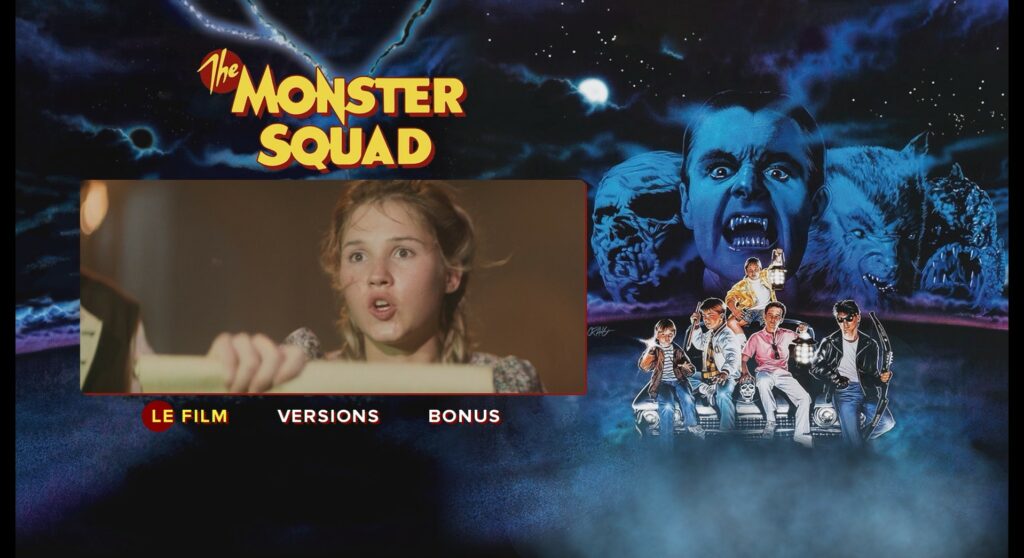 Deux choix s’offrent à vous pour acquérir The Monster Squad. Extralucid Films propose tout d’abord un Boîtier métal Steelcase – 4K Ultra HD + Blu-ray + Livret qui arbore un visuel dit « classic », mais aussi une Édition spéciale FNAC – Boîtier métal Steelcase – 4K Ultra HD + Blu-ray + Livret au visuel « mugshot ». Personnellement nous préférons le premier, mais le second ne manque pas de classe ! Pour le reste, les éditions se rejoignent. Nous trouvons un livret intitulé « L’Union fait la frousse » rédigé par Fabien Mauro (48 pages), qui aborde les grands crossovers de monstres au cinéma et à la télévision et qui contient également un focus détaillé sur la production de The Monster Squad. La sérigraphie des deux disques est soignée, tout comme les menus principaux, animés et musicaux. Notons que tous les suppléments se trouvent sur le Blu-ray standard.