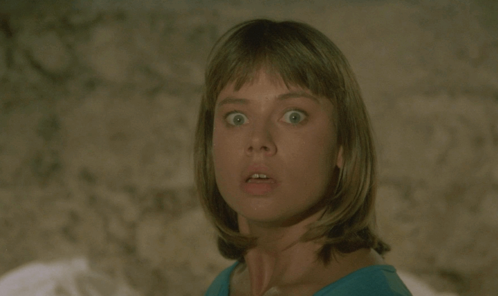 Même chose pour la musique de Carlo Maria Cordio (Sonny Boy, Le Gladiateur du futur, Horrible et même de Troll 2, oh my Goooooood !), qui peut faire vibrer les tympans, mais dont les sons parfois stridents participent au charme de ce thriller fantastique. Le casting tient le choc avec des tronches et jolis minois reconnaissables tels que l’excellent Jared Martin (2072, les mercenaires du futur, Le Voyage extraordinaire), vraie présence et charismatique, la belle Lara Naszinsky (cousine de Nastassja Kinski, et cela se voit), vue dans La Maison de la terreur de Lamberto Bava, Milijana Zirojevic (Papa est en voyage d’affaires d’Emir Kusturica) et Ulli Reinthaler (Zombi 3).