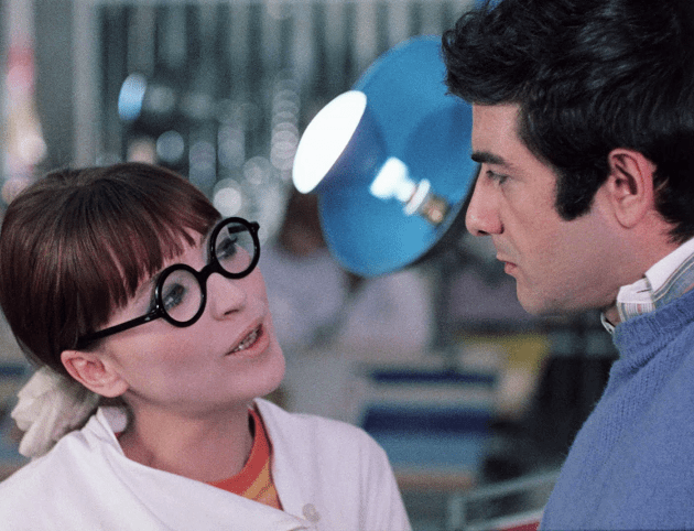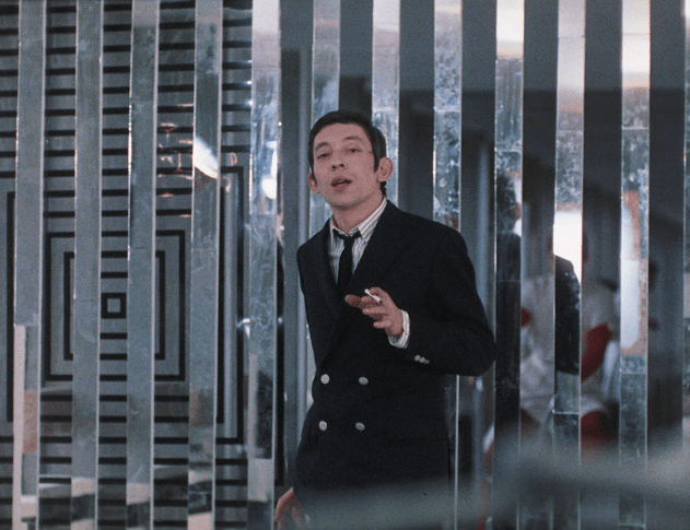 Et c’est parti pour 90 minutes de danse, de couleurs, un délire arty principalement tourné en décors naturels, dans les rues de Paris (toujours un immense plaisir de revoir la capitale autrement), au Bus Palladium rue Pierre-Fontaine dans le 9è arrondissement, à la gare de l’Est (où les passants regardent la caméra) et même dans l’incroyable Château Porgès de Rochefort-en-Yvelines. Un désenchantement imprègne le récit, comme si l’on arrivait à la fin d’une ère, comme s’il s’agissait d’un adieu à la jeunesse, à l’insouciance. À l’aube de mai 68, Serge Gainsbourg (auteur des paroles et de la musique) et Jean-Loup Dabadie (crédité comme dialoguiste), ont senti le vent tourner et Anna, malgré les apparences n’est pas une gaudriole. Les personnages boivent et fument plus que de raison, comme s’ils se rendaient compte qu’il s’agissait là de leurs dernières heures avant le début des responsabilités, avant l’entrée réelle dans le monde adulte. C’est pour cela qu’Anna rejoint plus le cinéma de Jacques Demy que celui de Jean-Luc Godard, auquel il a été longtemps et étrangement associé. Peut-être en raison de la présence de la sublime et lumineuse Anna Karina, même si la comédienne venait de tourner son dernier film avec celui qui fut son époux (Made in USA), sans oublier sa participation au film à sketches Le Plus Vieux Métier du monde. Anna Karina s’émancipe on va dire.
