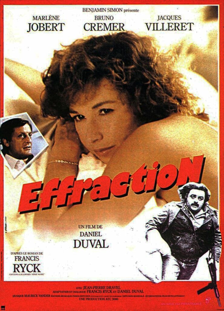 Dans le genre polar français passé plus ou moins inaperçu à sa sortie, peu diffusé à la télévision et donc indéniablement oublié aujourd’hui, Effraction est un spécimen. Pourtant, tout était réuni pour que le film connaisse un beau succès dans les salles ou fasse parler de lui plus tard si cela n’avait pas été le cas. Avec une affiche aussi prestigieuse réunissant Bruno Cremer, Marlène Jobert et Jacques Villeret, dirigés par Daniel Duval, Effraction faisait plus qu’envie…Échec cuisant avec à peine 250.000 entrées, Effraction ne méritait assurément pas ce désintérêt du public et même ce rejet dont il a fait l’objet ultérieurement. Nous sommes en avril 1983 et en cette belle année où Arnold Schwarzenegger devient officiellement citoyen américain, Les Dieux sont tombés sur la tête de James Ulys a attiré près de six millions de spectateurs (il restera d’ailleurs sur la première marche du podium), Tootsie fait le plein, Banzaï est un triomphe pour Coluche (même chose pour Tchao Pantin, qui sortira quelques mois après), Le Ruffian sera le dernier pour Lino Ventura, tandis que Sylvester Stallone vient de signer un doublé avec Rambo et Rocky III, L’Oeil du Tigre, qui ont dépassé tous les deux les trois millions d’entrées. Autant dire que le cinéma se porte bien, alors que d’autres mastodontes pointent déjà le bout de leur nez (Les Compères, L’Été meurtrier, Le Marginal, Flashdance, Papy fait de la résistance, Le Retour du Jedi, Octopussy…). Effraction n’apparaît qu’à la 112è place du box-office en 1983, coincé entre La Petite Bande de Michel Deville et Vive la sociale ! de Gérard Mordillat. Il est temps désormais de réhabiliter ce cinquième long-métrage mis en scène par Daniel Duval, qui quatre ans auparavant avait connu un succès international avec La Dérobade, 2,8 millions d’entrées et valu à Miou-Miou le César de la meilleure actrice. Pour Effraction, il adapte le roman éponyme de Francis Ryck, sorti dans la collection Série Noire en 1975, en collaboration avec celui-ci. Ce polar sombre et violent offre à Jacques Villeret l’un de ses rôles les plus inattendus, celui d’un type frappadingue, qui pour donner quelques exemples tue tout le monde à la mitraillette, tète le sein de Marlène Jobert et donne une raclée à Bruno Cremer, tout en faisant un hold-up, grimé avec postiche et fausse moustache et même en escaladant la corniche d’un hôtel comme Bebel. Oui, vous avez bien lu, et en plus le comédien apparaît très crédible dans toutes ces situations, ce qu’on était loin d’imaginer au premier abord. Également thriller psychologique, Effraction joue sur la tension et le malaise qui s’installent une fois que les trois personnages principaux sont réunis au mitan du film. De plus, on y retrouve un romantisme emphatique, exacerbé, propre à l’artiste hyper-sensible qu’était Daniel Duval. C’est tout cela Effraction, une œuvre hybride, qui semble ne pas savoir sur quel pied danser ni où se diriger, mais qui reflète justement ce sentiment de perte de repères des protagonistes. Une belle et grande réussite.