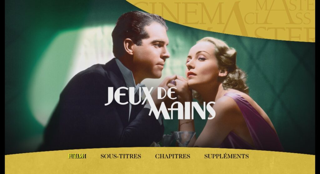 Aux côtés d’un lot conséquent de bandes-annonces issues de la collection, Elephant Films propose une présentation du film par l’excellent Frédéric Mercier (27’). Le critique évoque tout d’abord la carrière de Mitchell Leisen, avant tout chef costumier et chef décorateur de prestige, passé à la mise en scène en 1933, puis replace Jeux de mains dans sa filmographie. Frédéric Mercier indique qu’à cette époque, Ernest Lubitsch devient directeur de production pour le compte de la Paramount et que Hands Across the Table est comme qui dirait représentatif de son univers, de son esthétique. Jeux de mains, véhicule de star pour Carole Lombard, va être très bien accueilli par la critique et le public. Le casting est ensuite passé au peigne fin et la forme analysée toujours de façon passionnante.
