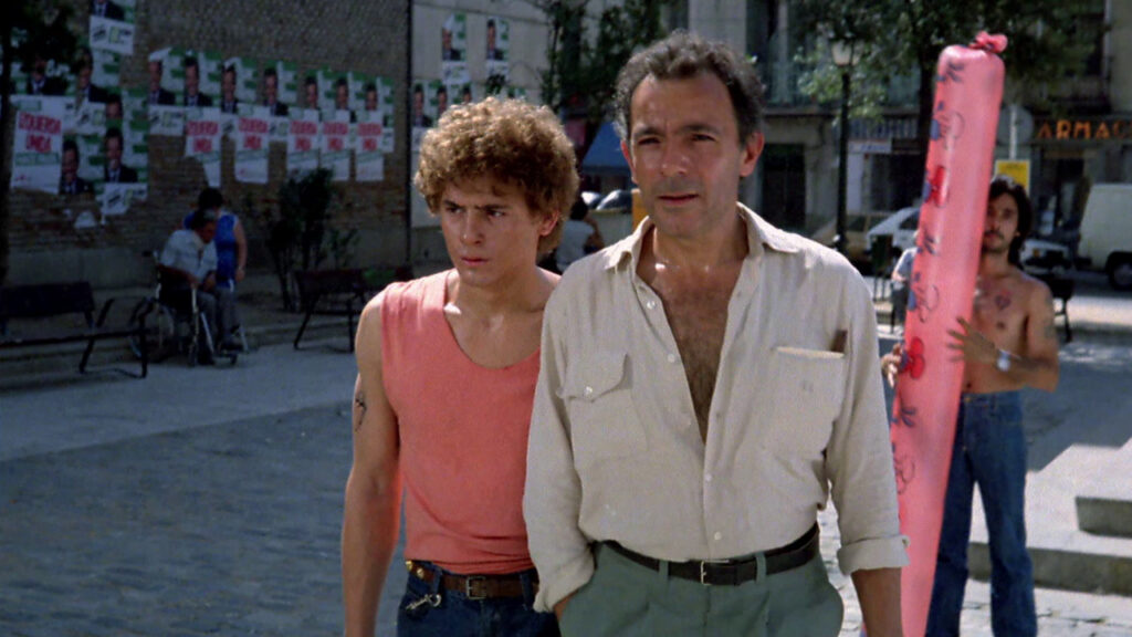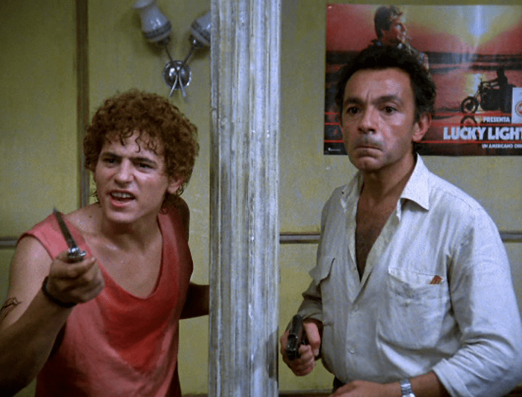 À la lecture du scénario, on pense au classique d’Édouard Molinaro, le formidable Pour cent briques t’as plus rien… (1982), adaptation d’une pièce de théâtre de Didier Kaminka, au point où l’on peut imaginer que le film ait pu inspirer la propre pièce de José Luis Alonso de Santos. Des ressemblances troublantes, surtout dans le lien affectif qui se tisse entre les personnages, sont ainsi notées comme ça tout du long. Comme dans le cinéma quinqui qui a fait sa réputation, Eloy de la Iglesia s’intéresse aux gens de la rue, qui arrivés au bout du rouleau, entreprennent, parce qu’ils ont la dalle, de braquer un pauvre bureau de tabac du quartier. Leandro, le plus âgé, magnifiquement campé par José Luis Gómez (Étreintes brisées, Les Yeux bandés) est sans emploi depuis deux ans et sans boulot à l’horizon. Il est épaulé par Tocho, (José Luis Manzano, acteur fétiche et amant du cinéaste, vu dans Colegas, Navajeros, El Pico et sa suite), jeune au sang chaud, à fleur de peau, qui vient de perdre sa mère et qui ne sait pas de quoi sera fait le jour suivant.