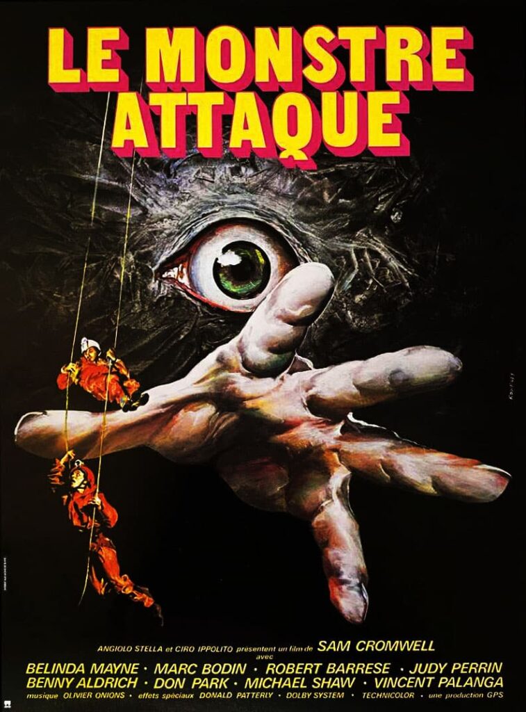 Du réalisateur Ciro Ippolito (né en 1947), on connaissait surtout son boulot comme scénariste et de producteur (l’excellent Les Contrebandiers de Santa Lucia – I contrabbandieri di Santa Lucia, d’Alfonso Brescia), mais moins son œuvre comme metteur en scène. C’est effectivement lui que l’on retrouve derrière le pseudonyme de Sam Cromwell, exportation oblige, et donc à la barre du Monstre attaque (même si le tournage a été commencé par Biagio Proietti, parti au bout de deux semaines), sorti de façon opportuniste sous le titre Alien 2 sulla Terra. Le film se présente comme une « séquelle » d’Alien, le huitième passager de Ridley Scott, triomphe de l’année précédente. En bon italien qui se respecte dans le monde du cinéma, Ciro Ippolito a immédiatement voulu s’engouffrer dans la brèche et profiter de l’engouement des spectateurs pour la science-fiction. Autant dire que Le Monstre attaque ne joue pas du tout dans la même catégorie que son modèle, reste un outsider mal élevé (car zieutant honteusement sur la copie de son voisin), mais n’en reste pas moins attachant dans ses innombrables défauts. Toutefois, dire que le film est raté serait également mentir, car cet Alien 2 sulla Terra comporte aussi quelques points forts, notamment ses superbes décors naturels, capturés dans les Pouilles, où ont été trouvées les grottes de Castellana, lieu d’action principal de l’intrigue. Résultat des courses, malgré les tentatives de la Fox et des producteurs (dont Walter Hill) d’empêcher sa distribution en menaçant Ciro Ippolito d’attaques en justice (restées sans suite), Le Monstre attaque a connu son petit succès dans le circuit du cinéma Bis, en devenant même un petit film culte. De là à déclarer comme certains qu’il s’agit d’une matrice – à sa façon – d’un autre désormais classique comme The Descent de Neil Marshall, il y a un pas que nous ne franchirons pas et préférons même reculer pour rire tout bas. En l’état, cette production horrifique remplit son contrat et on ne s’ennuie pas devant cette boucherie qui se déroule à 400 mètres de profondeur. Dans le gouffre, personne ne vous entendra rire.