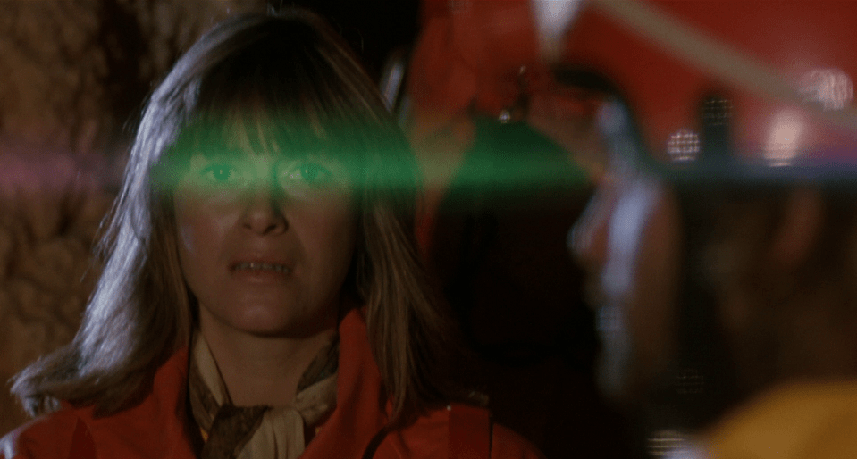 États-Unis : tout le pays attend avec impatience l’arrivée de deux astronautes à bord d’un vaisseau spatial qui atterrira au large de la côte est. Pendant ce temps, dans les studios d’une chaîne de télévision de San Diego (Californie), un journaliste interviewe Thelma, une jeune spéléologue qui vient de terminer une exploration et s’apprête à en réaliser une autre. La jeune fille fait une crise pendant l’entretien, sentant un danger imminent. Le responsable de la station est contraint de couper court à l’émission pour diffuser des images en direct du vaisseau spatial. Thelma décide immédiatement d’appeler son psychiatre, car elle a déjà eu des crises similaires dans le passé, étant dotée de fortes perceptions télépathiques. Thelma et son compagnon Roy retrouvent les autres spéléologues de leur groupe dans un bowling, puis partent vers le site de la prochaine expédition. Lors d’une halte, Burth sort de la voiture pour acheter des bougies et Thelma décide de se promener sur une plage voisine. Alors que Roy la rattrape, elle subit une nouvelle crise. Pendant ce temps, des roches bleutées et pulsantes commencent à apparaître dans la zone proche de l’amerrissage de la navette. Une petite fille sur la plage en ramasse une et lorsque sa mère parvient à la retrouver, elle découvre que quelque chose a déchiqueté son visage. Alors qu’ils se rendent à la grotte, les spéléologues entendent à la radio que les autorités n’ont trouvé aucun survivant de l’équipage à l’intérieur du vaisseau. Arrivé à proximité de la grotte, le groupe s’arrête dans une supérette pour se changer et se ravitailler ; Burth ramasse un fragment de roche bleutée et le donne à Thelma. Le groupe de spéléologues commence sa descente dans les tunnels profonds des grottes, s’enfonçant de plus en plus loin dans le sol. Le lendemain matin, alors que Thelma et Jill commencent leur exploration, Jill remarque qu’une pierre dans le sac de Thelma s’est mise à palpiter ; elle la ramasse et elle se fait soudain attaquer par une créature monstrueuse.