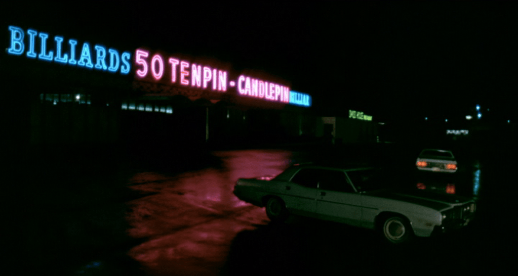 Mais avant d’en arriver là, Peter Yates filme les diners, les parkings, les bagnoles (où souvent, quelqu’un est en planque), les baraques en bois de la banlieue de Boston, les bars au relent de bière tiède et à l’air lourd de la fumée de cigarette. Avec son sens inouï du cadre, la superbe photo automnale signée Victor J. Kemper (Un après-midi de chien, Magic, Les Yeux de Laura Mars, Audrey Rose, Stay Hungry), le montage quasi-scientifique de Pat Jaffe, on ne peut détacher nos yeux des Copains d’Eddie Coyle. On pense aussi à Fat City de John Huston, sorti l’année précédente, dans lequel les personnages étaient lancés dans une quête illusoire et désespéré, où la deuxième chance et la rédemption n’existent pas, où chacun va d’un point A à un point A.