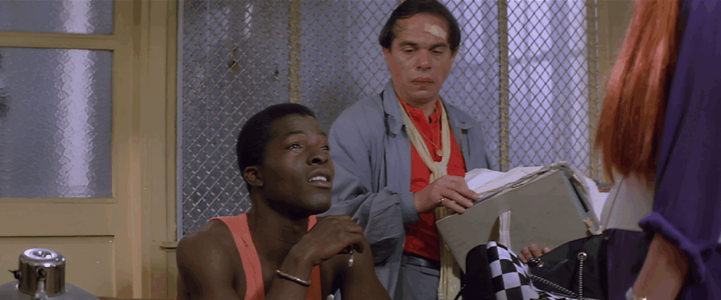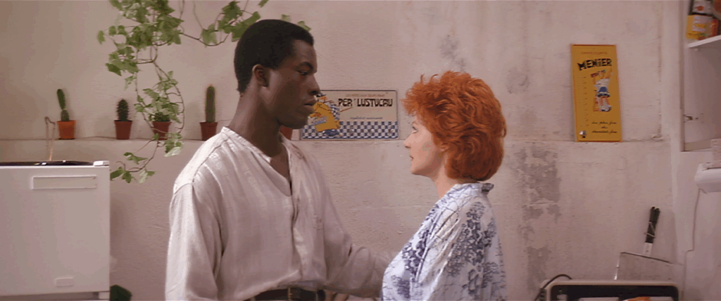 Qui plus est, il s’agit ici d’une histoire d’amour inattendue, qui débarque sans crier gare. Et cela fonctionne, car l’osmose est réelle et palpable entre le couple vedette, qui prend visiblement beaucoup de plaisir à se renvoyer la balle. À leurs côtés, brillent Jean-Pierre Léaud donc (chacune de ses scènes est anthologique), le lunaire Ticky Holgado (qui s’en prend plein la tronche), Catherine Hiegel (dans un rôle qui n’a rien de comique et qui s’avère même très grave), et tout un tas de tronches récurrentes dans le cinéma hexagonal d’alors, mais auxquelles il est difficile ou impossible de rattacher un nom. On notera aussi la première apparition au cinéma de Roschdy Zem, figurant, alors vendeur aux puces.