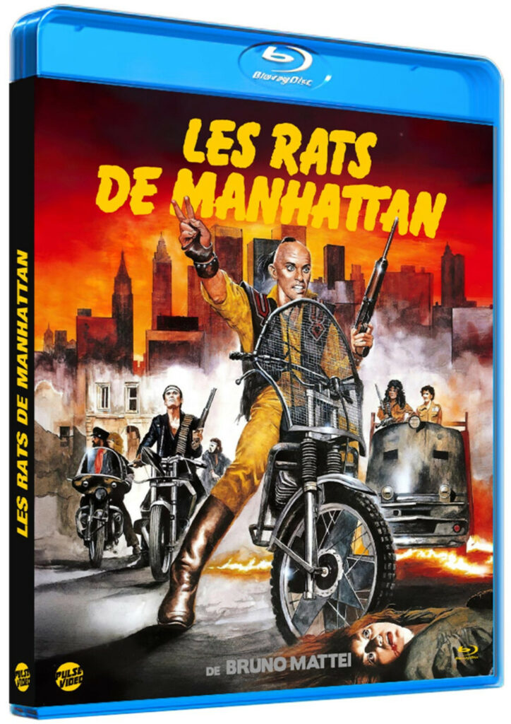 Après l’immense succès rencontré sur notre site de la chronique consacrée à l’édition 4K UHD de 2019 après la chute de New York, nous nous penchons aujourd’hui sur le Blu-ray des Rats de Manhattan, là encore édité par Pulse Vidéo. Après la VHS UGC Vidéo, puis celle de Proserpine, VidéoFilms et enfin Film Office en France, le film du tandem Mattei/Fragasso débarque en Haute-Définition ! Le Blu-ray repose dans un boîtier classique de couleur bleue. Mention spéciale à la jaquette réversible, qui reprend les visuels originaux d’époque. Nous préférons celui de l’exploitation française. Le menu principal est animé et musical.