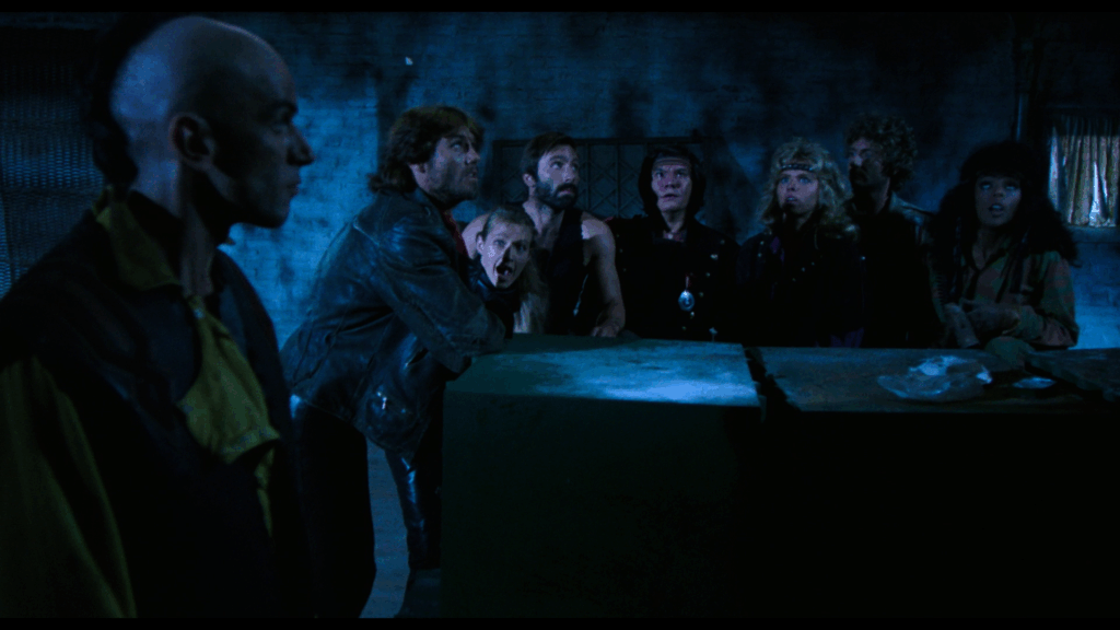 Quand on vous dit film d’horreur (ou pas d’ailleurs) avec des rats, vous pensez instantanément à Willard (1971) de Daniel Mann, sans doute moins à sa (minable) suite Ben (1972) de Phil Karlson, mais aussi aux très bons Soudain… les monstres – The Food of the Gods (1976) de Bert I. Gordon et Les Rats attaquent – Deadly Eyes (1982) de Robert Clouse. Mais alors, pourquoi pas aux Rats de Manhattan – Rats – Notte di terrore de Bruno Mattei ??? Tout simplement parce qu’on ne peut pas dire que cette référence ultime du nanar n’a rien d’effrayant et que dans notre inconscient de cinéphile/age cet opus demeure une comédie involontaire. Par ailleurs, Les Rats de Manhattan doit moins à Bruno Mattei (t’as beau être crédité Vincent Dawn, on sait que c’est toi!) qu’au co-scénariste Claudio Fragasso, qui de l’avis quasi-unanime (l’actrice Geretta Geretta prétend le contraire, mais elle est bien la seule) a été beaucoup plus présent sur le plateau que le premier et qui est « responsable » de la direction d’acteurs. Si le résultat n’a jamais été fameux et ce même à sa sortie en 1984, les années n’ont pas arrangé les choses, c’est le moins qu’on puisse dire. Enfin, dans un certain sens. Puisque cette Notte di terrore demeure tout de même un divertissement qui met à mal les zygomatiques et reste un sommet du mauvais film (ultra) sympathique post-nuke (le film sera exploité en Allemagne sous le titre Les Guerriers du Bronx 3!), dans lequel les « comédiens » n’ont absolument rien à défendre et passent tout le film à crier face caméra, à (sur)réagir au moindre bruit suspect, les yeux écarquillés, en hyper-ventilation. Rien, absolument rien ne fonctionne dans Les Rats de Manhattan et c’est pour cela qu’on prend un plaisir (ceux qui disent « coupable » n’ont rien à faire là) immense à visionner ce film « d’épouvante » qui a en plus l’outrecuidance d’avoir été tourné en partie dans les mêmes décors qu’Il était une fois en Amérique – Once Upon a Time in America de Sergio Leone ! Avouez que ce grand écart démembrerait même JCVD. Toujours est-il qu’on s’amuse follement à suivre les aventures de cette bande de bras cassés, plongés dans la pénombre durant 95 minutes (en dehors du générique, tout se déroule en pleine nuit), histoire de calfeutrer la misère des décors, des costumes et des accessoires…mais pas celle des coupes de cheveux, car même si le récit se déroule en l’an 225 « après la bombe », ce qui situe donc le film vers 2240, la nuque longue et la coupe choucroutée semblent être revenus à la mode…On en redemande !