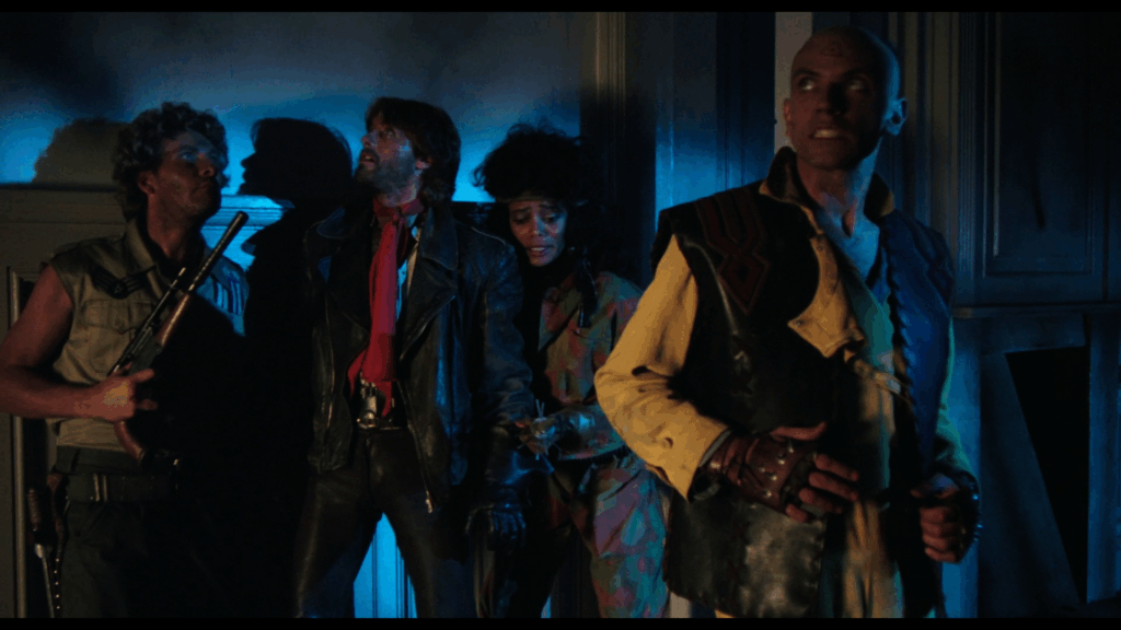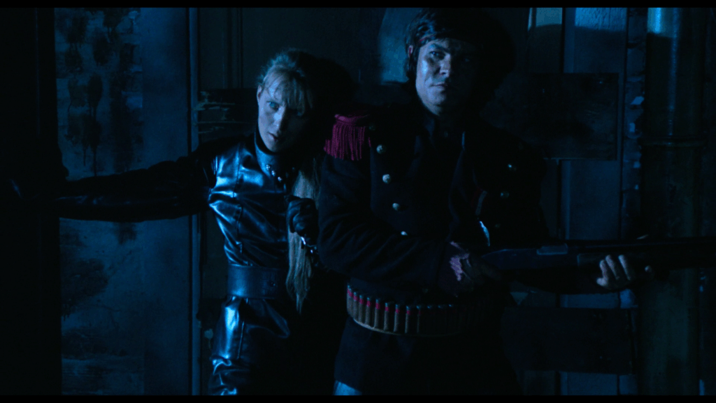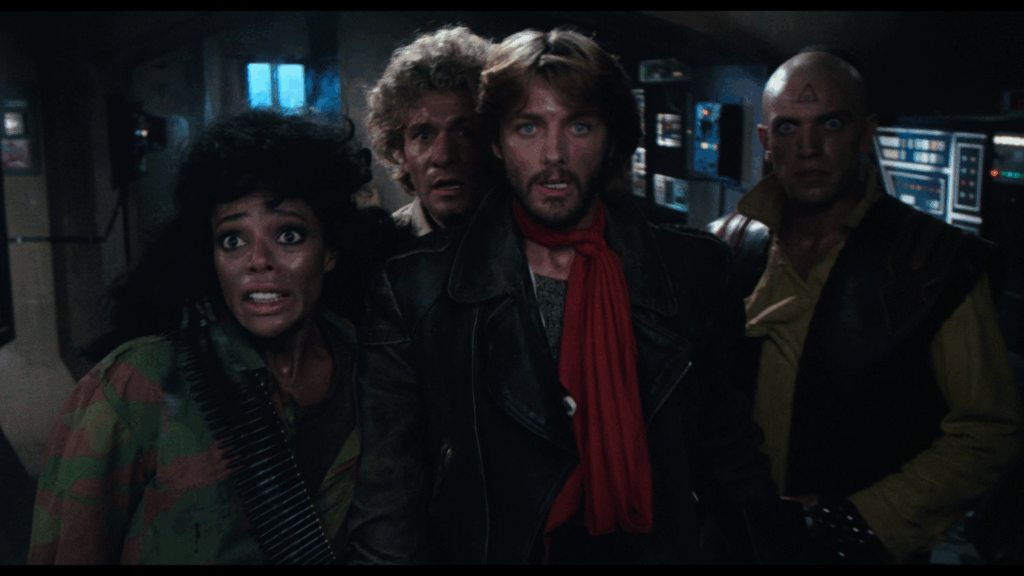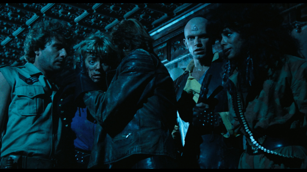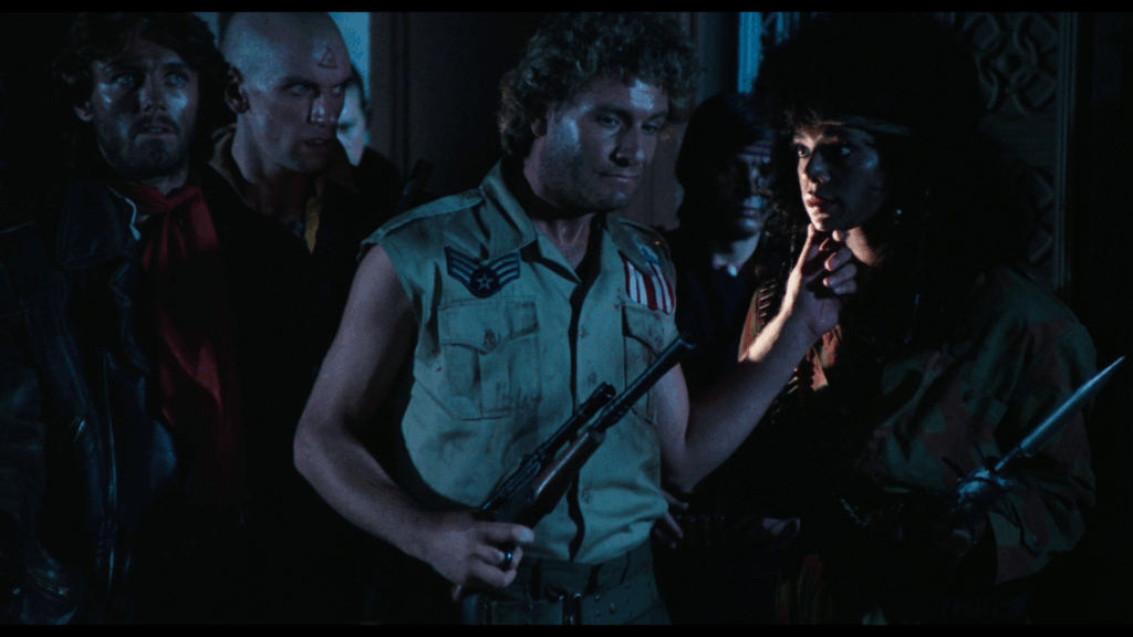 Le film hésite à copier Alien de Ridley Scott (pour ce qui est de l’affrontement avec créature, qui agit ici comme une seule entité), Mad Max de George Miller (pour le look et les véhicules), The Thing (pour le duel au lance-flammes face à une créature) et New York 1997 de John Carpenter, pour l’action située à Manhattan, même si cela n’est jamais mentionné. Au passage, le leader s’appelle, non pas Snake (encore heureux), mais Kurt. Attention subtilité. On notera aussi que le tandem Mattei/Fragasso a baptisé le personnage joué par Geretta Geretta « Chocolat »…Ils sont allés loin pour la trouver celle-ci.