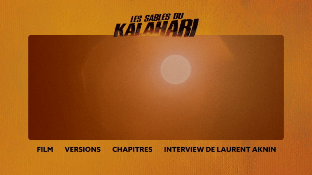 C’est assurément l’une des grandes sorties de cette rentrée. Les Sables du Kalahari ne disposait jusqu’à présent d’aucune édition DVD dans nos contrées. Rimini exhume ce titre longtemps espéré par les cinéphiles et propose l’oeuvre de Cy Endfield en Combo Blu-ray + DVD. La jaquette au visuel percutant, est glissée dans un boîtier Blu-ray transparent, le tout reposant dans un fourreau cartonné qui arbore le même graphisme. Le menu principal est animé et musical. Notons que l’éditeur a d’ores et déjà annoncé la sortie de Zoulou – Zulu en Édition limitée – Blu-ray + livret le 22 avril 2026, titre sur lequel nous reviendrons évidemment.