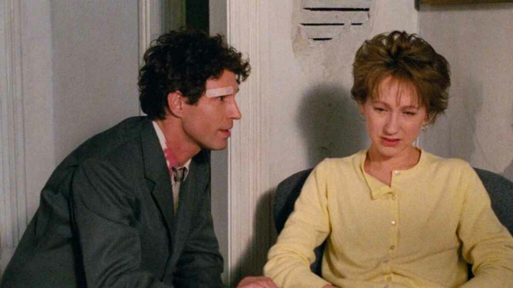Elle croyait bien faire cette pauvre Cécile, tout cela pour venir en aide à l’homme qu’elle aime (Richard Berry, qui a peu de scènes, mais qui s’impose tout de même) et veut tout faire pour rester à Manhattan. Comme il y a une solution à tout, elle accepte cette étrange proposition de mariage blanc. Pour cela, elle passe par Novak qui lui présente plusieurs profils. Au hasard, elle tire celui d’un certain Zacharie S. Freestamp, qui devient bientôt son époux de papier… et qui se prendra un peu trop au jeu. Mais cet homme au passé trouble s’avère être un dangereux psychopathe et Cécile ne tardera pas à tomber dans un terrible engrenage. Patrick Jamain joue sur la tension qui va crescendo, en profitant de l’incroyable tronche de John Shea. Ce dernier, vu dans Missing de Costa-Gavras, où le réalisateur l’a sûrement repéré, reste célèbre aujourd’hui pour avoir incarné Lex Luthor dans la série Loïs et Clark, les nouvelles aventures de Superman. Si sa carrière au cinéma restera quelque peu obscure, en dehors d’une participation à Chérie, j’ai agrandi le bébé – Honey I Blew Up the Kid de Randal Kleiser, son rôle dans Lune de miel est certainement l’un de ses plus intéressants.