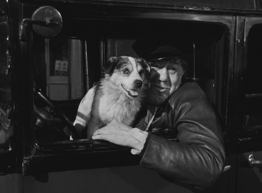 André Hunebelle (1896-1985) est un cas à part dans le cinéma français. Ancien maître verrier, il décide de se reconvertir dans le cinéma à presque 45 ans. Il se lance en tant que producteur et réalisateur et signe son premier film en 1948, Métier de fous. Le succès sera immédiatement au rendez-vous. Au cours de sa carrière, qui s’étendra jusqu’à la fin des années 1970, les films du metteur en scène attireront près de 85 millions de français dans les salles. Un score inimaginable. On a tous ses plus grands hits en mémoire, Le Bossu (1959, 5,8 millions d’entrées), Les Trois Mousquetaires (1953, 5,3 millions), Le Capitan (1960, 5,2 millions), Fantômas (1964, 4,5 millions), Fantômas se déchaîne (1965, 4,2 millions)…D’autres titres sont évidemment aussi emblématique, Fantômas contre Scotland Yard, Cadet Rousselle, Le Miracle des loups…On connaît moins la première partie de sa filmographie et c’est avec plaisir que nous découvrons Monsieur Taxi, sorti en 1952 et qui avait déjà réuni près de deux millions de spectateurs. Un véhicule de star pour Michel Simon, qui parcourt les rues de Paris au volant de son vieux tacot, son fidèle chien sur les genoux, entamant facilement la conversation avec celles et ceux qui feront un petit bout de chemin avec lui. Monsieur Taxi est ni plus ni moins une chronique bon enfant sur le quotidien d’un modeste chauffeur de taxi, qui fait ce qu’il peut pour entretenir sa famille, y compris ses deux enfants, désormais en âge de se marier. C’est alors qu’un jour, son train-train est quelque peu bouleversé par la découverte d’un sac à main contenant 300.000 « balles ». Honnête et intègre, Pierre va se mettre à la recherche de sa propriétaire. Ce qui marque surtout dans Monsieur Taxi, c’est le tournage qui fait souvent honneur aux extérieurs, ce qui permet de revoir Paris au début des années 1950, alors que les trublions (pour être poli) de la Nouvelle vague fustigeaient ce « cinéma de papa » principalement confiné dans les studios. L’oeuvre d’André Hunebelle, Gilles Grangier, Alex Joffé et les autres pris en grippe par les prétentieux a pourtant nettement mieux vieilli que les expériences formelles de Godard et consorts, d’autant plus qu’ils se doublent aujourd’hui d’une dimension documentaire. Indubitablement, Monsieur Taxi n’est pas une grande comédie, mais reste un savoureux divertissement.