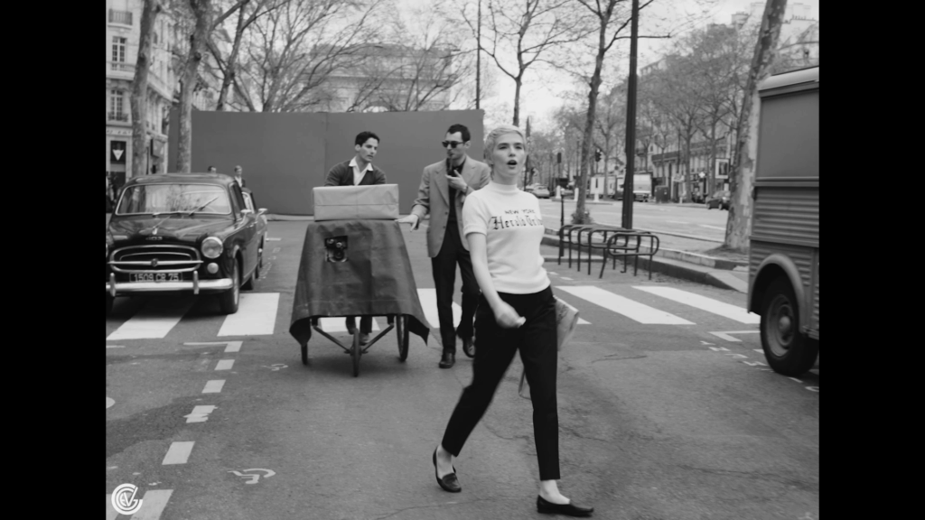 Comme à la fin des années 1950, Nouvelle Vague laisse place aux talents de demain, Guillaume Marbeck (revu dans Coutures d’Alice Winocour), bluffant en JLG, Aubry Dullin (incroyable en Bébel), Adrien Rouyard (vu dans la série Supersex, impeccable en Truffaut), Bruno Dreyfürst (impérial en Georges de Beauregard, dépassé par les événements)…on pourrait citer tous les acteurs et les actrices jusqu’alors méconnus voire inconnus, tant ceux-ci s’avèrent admirables. Et n’oublions pas l’américaine Zoey Deutch, astre discret du cinéma US, fille de Lea Thomspon (Lorraine dans la trilogie Retour vers le futur) et du réalisateur Howard Deutch (Rose Bonbon, L’Amour à l’envers, Rends la monnaie, papa), présente depuis une dizaine d’années (Sublimes Créatures de Richard LaGravenese, Vampire Academy de Mark Waters, The Disaster Artist de James Franco) et qui avait déjà travaillé avec Richard Lniklater en 2016 dans Everybody Wants Some!!. Elle crève à nouveau l’écran dans la peau de Jean Seberg, rôle pour lequel elle a dû apprendre ses dialogues (phonétiquement sans doute) dans la langue de Molière. Les scènes où elle déambule sur les Champs-Elysées en proposant le New York Herald Tribune donne des frissons, tandis que Richard Linklater, disposant des moyens lui permettant ce voyage dans le temps, prend visiblement un grand plaisir à reconstituer les coulisses d’un des films les plus matriciels de l’histoire du cinéma.