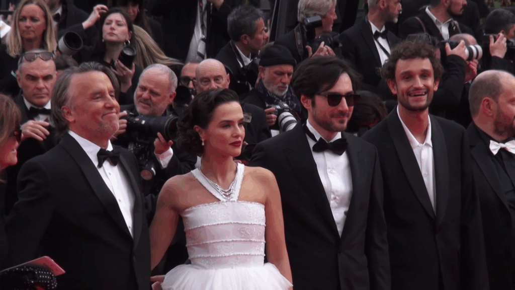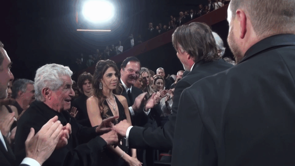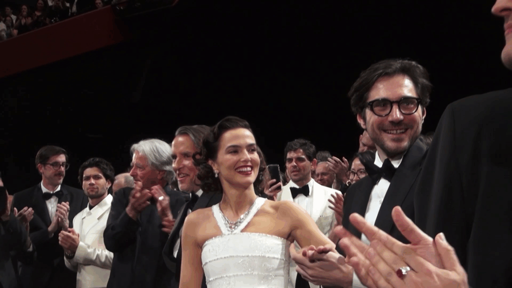 De la Croisette il en est justement question dans le bonus suivant, avec successivement la conférence de presse menée par Philippe Rouyer avec l’équipe du film (5’40), la montée des marches des mêmes intéressés (2’), la standing ovation (2’40) avec les applaudissements et les félicitations de Quentin Tarantino et Claude Lelouch, ainsi que la soirée du film (3’), durant laquelle 300 drones reconstituent l’affiche de Nouvelle Vague sur 60 mètres de haut, tandis que les acteurs, coupe de champagne à la main, prennent du bon temps pour fêter l’accueil chaleureux de la presse et du public.