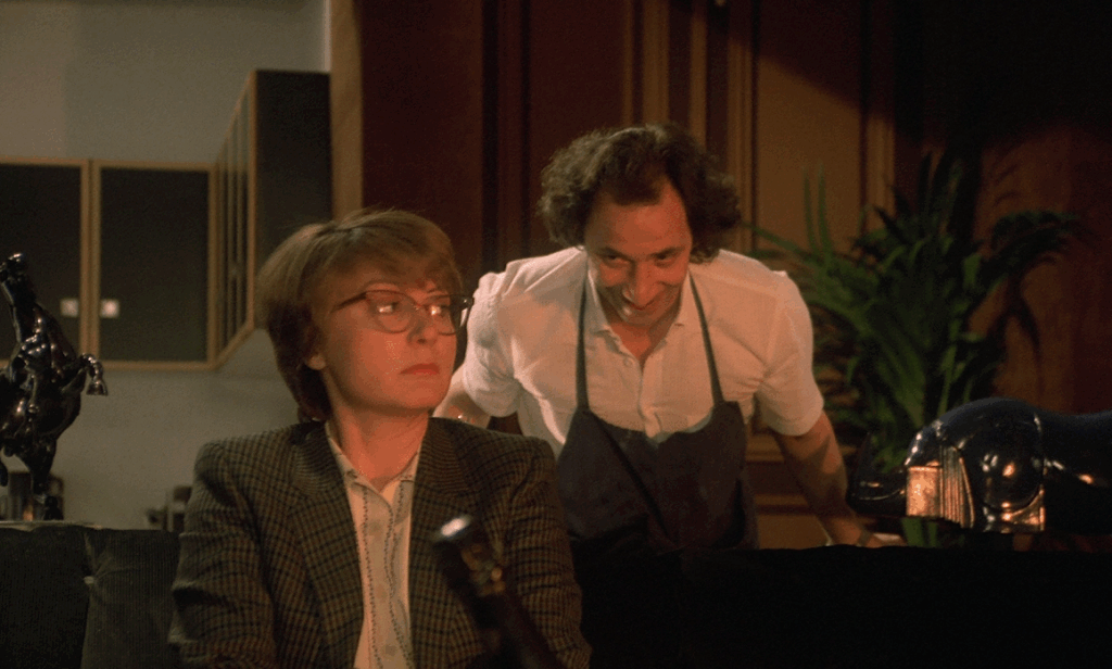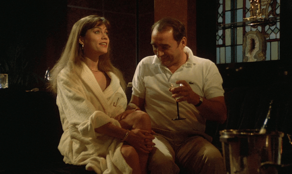 « Si Jaja » dit le sympathique Manuel (l’argentin Héctor Malamud, inoubliable) le factotum de Lestrade, qui tente de faire plaisir à son boss, patron d’une prospère clinique vétérinaire, principalement en instaurant une ambiance romantique afin d’accueillir la nouvelle conquête de celui qui l’emploie. Seulement voilà, celle qui s’incruste dans ce quotidien trop bien huilé est inspectrice des impôts. Le luxueux appartement, la grosse voiture et les vêtements de grand couturier deviennent alors suspects. Si Gigi prenait ça à la rigolade dans un premier temps, Béatrice Flamand n’est pas là pour se marrer. Jacques Monnet concocte une série de quiproquos qui ne s’arrêtent pas du début à la fin et prend visiblement beaucoup de plaisir à filmer son duo vedette qui rivalise de tchatche et de charme.