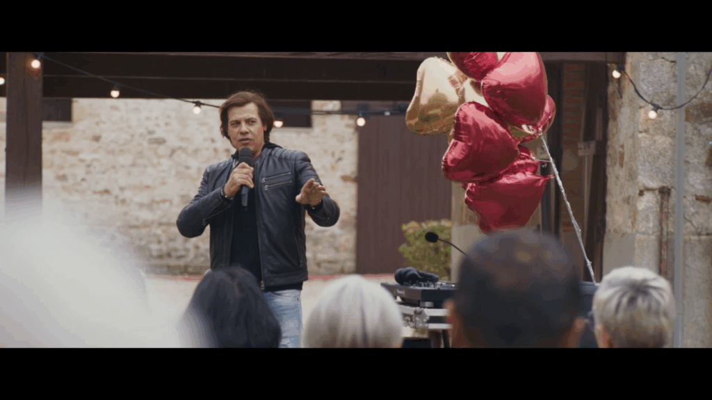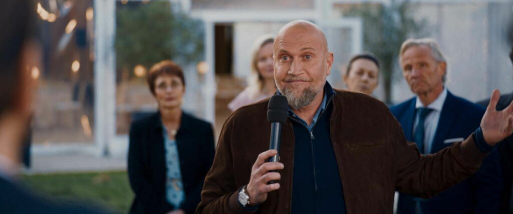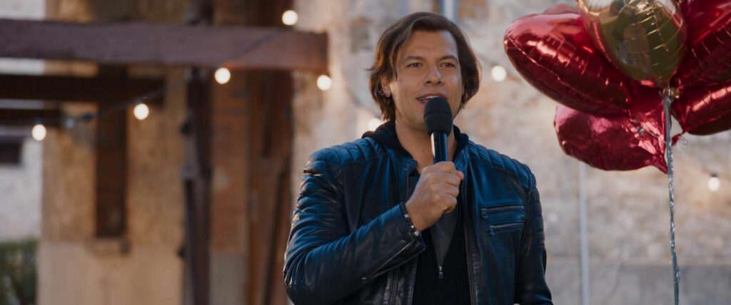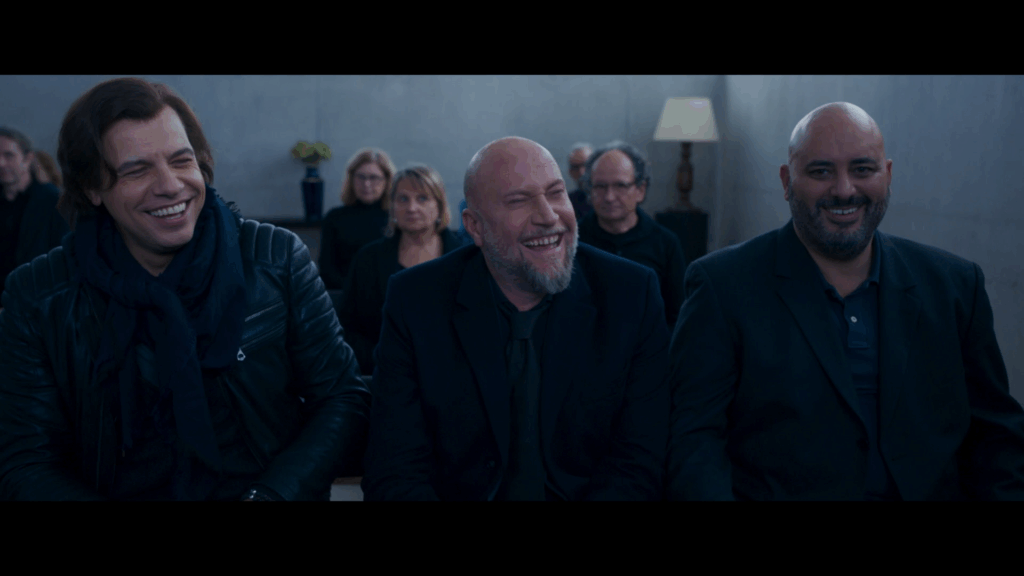 Les acteurs sont gâtés par le texte (du nectar), par le réalisateur/partenaire, mais aussi par des partis-pris chaleureux grâce auxquels ils sont chacun mis en valeur. Jérôme Commandeur ne tire jamais la couverture et laisse suffisamment de draps à ses camarades pour briller autant que lui. Il n’y aura pas exemple jamais assez de qualificatifs pour dire tout le bien que l’on pense de Laurent Lafitte, qui se permet d’être aussi incroyable de film en film, comme dernièrement dans le génial Alter Ego de Nicolas et Bruno, La Femme la plus riche du monde Thierry Klifa (qui lui a valu le César du meilleur acteur) et bien sûr Le Comte de Monte-Cristo de Matthieu Delaporte et Alexandre de La Patellière. On se souviendra longtemps de son rôle de vieux-beau beauf, définitivement coincé dans les années 1990, qui vit de petites tournées minables, en emballant une ancienne fan tous les soirs dans les chiottes de la salle des fêtes du coin.