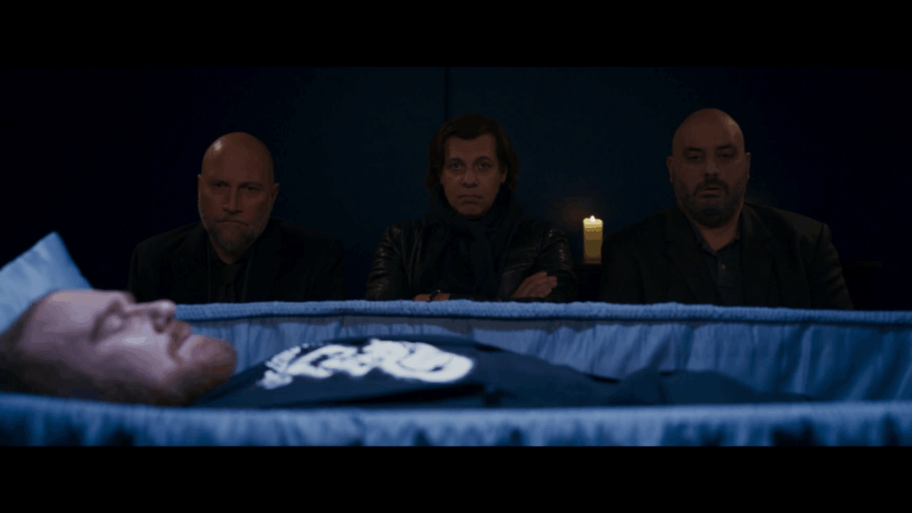 Une poignée de scènes coupées (2’15), une se déroulant durant la fête finale (avec un gag qui ne fonctionne pas) et une autre qui montre les trois compères à la veillée funêbre de leur pote, tandis que la veuve de ce dernier (la géniale Olivia Côte) se lâche quelque peu dans son malheur…