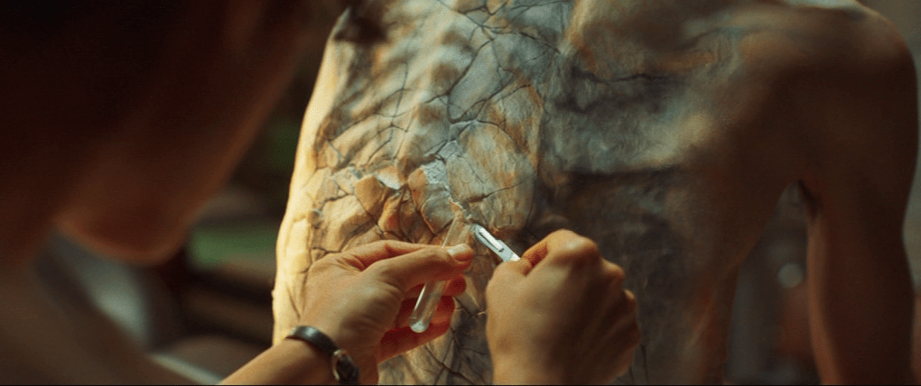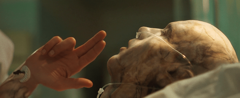 Au spectateur alors d’essayer de reconstituer ce mauvais puzzle, du genre auquel il manque des pièces et rend donc inutile le fait qu’on y consacre du temps. On passe d’une scène bleutée-grise au jaune peu ragoûtant, histoire de bien différencier les deux « actions », comme un Steven Soderbergh du pauvre en quelque sorte, des partis-pris esthétiques peu recherchés signés Ruben Impens, déjà à l’oeuvre sur Titane. Les effets visuels sont très réussis, notamment tout ce qui illustre la maladie, à mi-chemin entre le sida et l’asbestose (liée à l’absorption d’amiante), grâce auxquels quelques scènes parviennent à sortir du lot (une scène devant un hôpital rappelle brièvement Romero), mais tout ceci est bien trop peu.