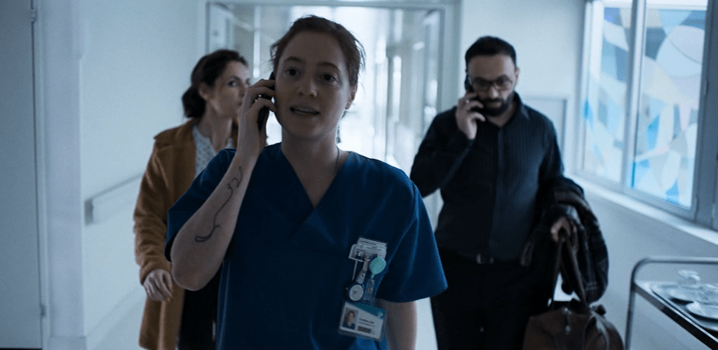 90 minutes d’adrénaline, sans aucune interruption, c’est En première ligne, troisième long-métrage de la réalisatrice suisse Petra Biondina Volpe, qui s’inspire ici du livre-enquête de Madeline Calvelage intitulé Unser Beruf ist nicht das Problem, es sind die Umstände (en français, « Le problème n’est pas notre métier, c’est le contexte »). Dans cet ouvrage, l’autrice, jeune infirmière allemande, détaillait son quotidien professionnel, en mettant en relief le manque de moyens et de personnel. Celle-ci a travaillé en étroite collaboration avec la cinéaste, non seulement au scénario, mais aussi comme consultante, afin de veiller au réalisme des situations. De ce point de vue, Léonie Benesch (née en 1991) emporte tous les suffrages. L’actrice allemande, découverte en 2009 dans Le Ruban blanc – Das weiße Band de Michael Haneke est ensuite devenue l’une des plus en vue dans son pays, grâce notamment à la série Babylon Berlin. Celle qui a aussi été Cécile de Grève dans la série The Crown livre une remarquable prestation dans En première ligne et prouve une fois de plus après La Salle des profs – Das Lehrerzimmer de İlker Çatak et September 5 de Tim Fehlbaum qu’elle peut tout à fait prétendre à une carrière internationale, à l’instar de Nina Hoss. Par son intensité et son charisme qui rappelle souvent celui d’Alba Rohrwacher, elle emporte le spectateur dans la folie (euphémisme) du parcours du combattant que représente le train-train de Floria. Présente dans toutes les scènes, quasiment de tous les plans, Léonie Benesch ne fait qu’un avec son personnage (on imagine les heures de préparation pour arriver à ce niveau de perfection) et le spectateur de plonger dans cet enfer malheureusement d’actualité et dont la situation ne fera que de s’aggraver.