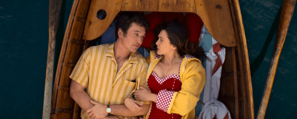 Il y a quelque chose de Lubitsch, de Capra, de Hawks, de Sturges, de Wilder, de La Cava et de McCarey dans Pour l’éternité, ce qui n’est évidemment pas pour nous déplaire, surtout que le réalisateur David Freyne a l’air d’avoir bien digéré ces illustres références. On pense aussi au très beau Au-delà de vos rêves – What Dreams May Come (1998) de Vincent Ward ou bien encore au génial Pleasantville (1998) de Gary Ross, qui convoquait et parasitait le cinéma américain des années 1950, en y propulsant deux jeunes des années 1990, présences qui allaient entraîner quelques révolutions. Dans Pour l’éternité, Larry et Joan retrouvent leur jeunesse dans le purgatoire. Le jeu d’Elizabeth Olsen (avec laquelle on passerait bien aussi l’éternité) et de Miles Teller (une des plus belles mues du cinéma américain depuis sa découverte il y a quinze ans dans Rabbit Hole de John Cameron Mitchell), tous les deux coproducteurs, renvoie ainsi à celui de l’âge d’or, mais sans en faire des caisses, sans singer, toujours avec naturel, fraîcheur, une partition qui leur va à merveille et avec laquelle ils se délectent.