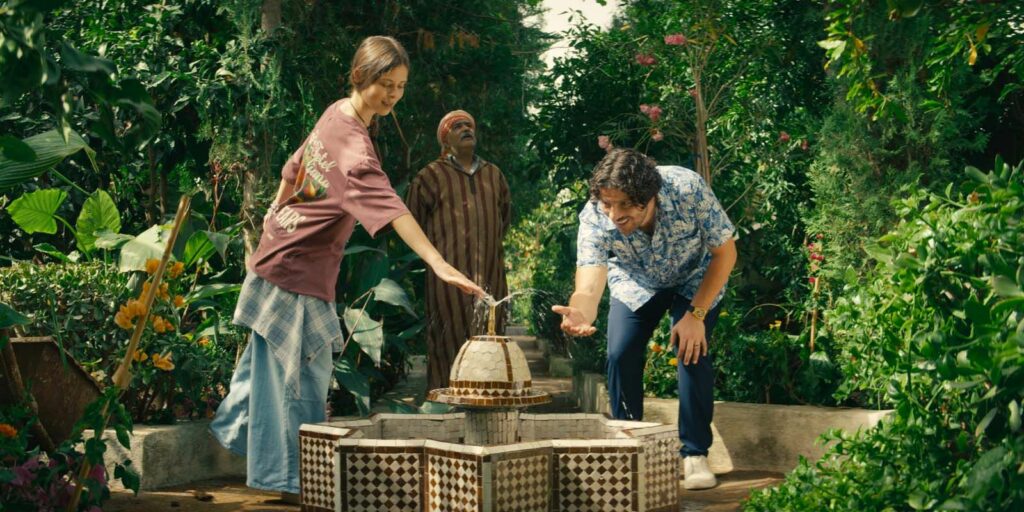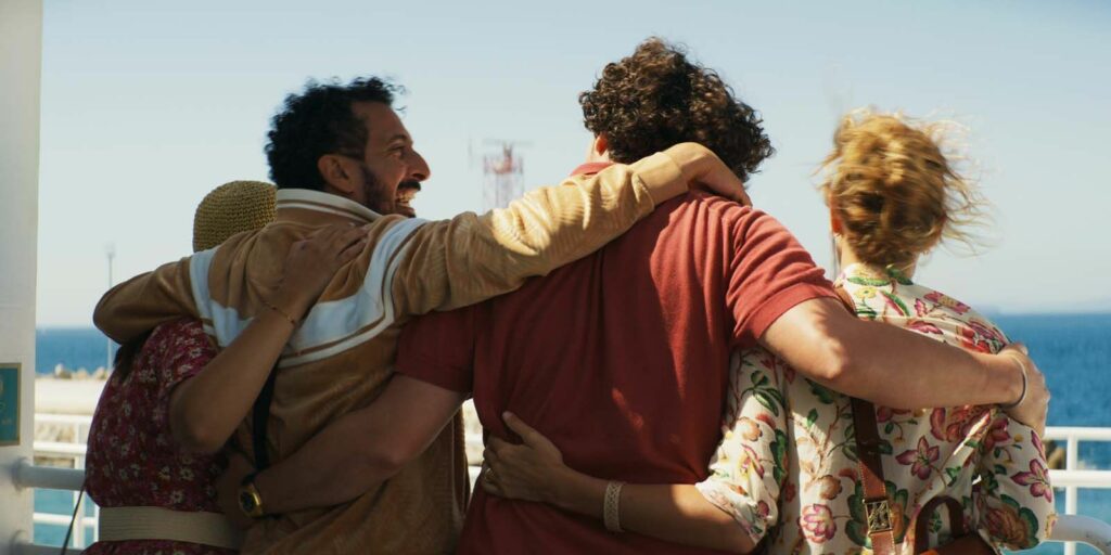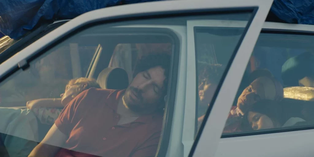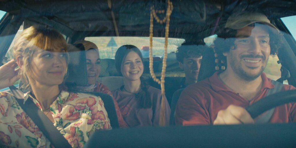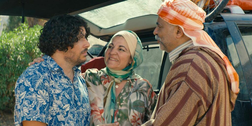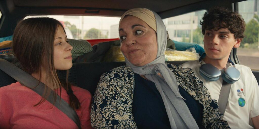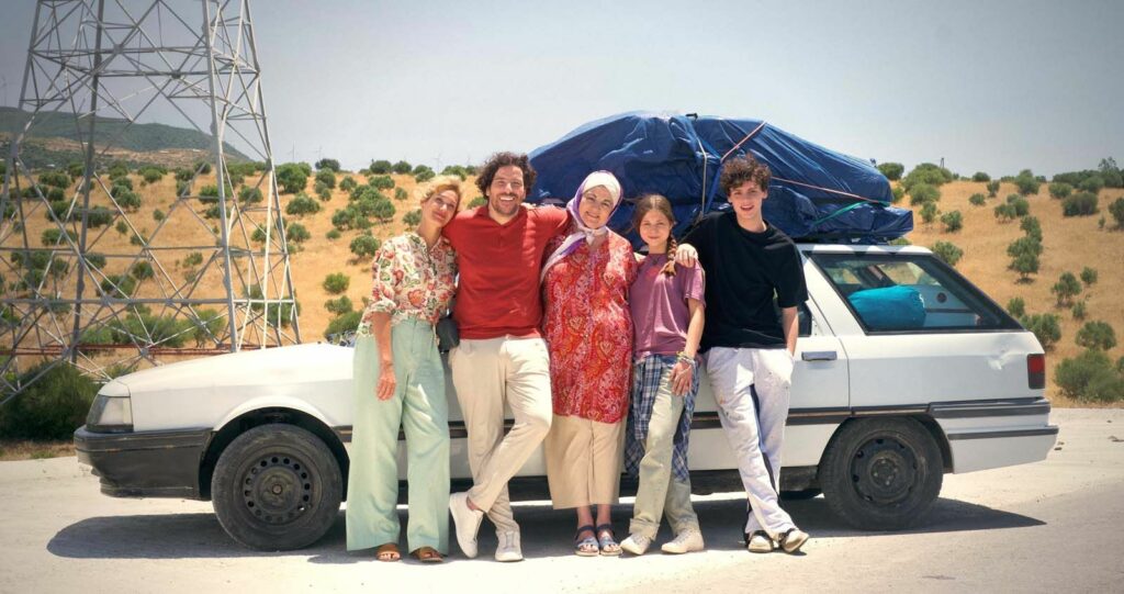 Le principal, est que l’on croit à cette famille dysfonctionnelle. Kamel est tellement plongé dans ses affaires professionnelles, qu’il en a délaissé son épouse, avec laquelle le dialogue passe mal désormais. Ils sont parents de deux ados et leur thérapie de couple ne présage plus rien de bon pour un avenir commun. C’est alors que la promesse d’un gros chantier à Los Angeles autorise Kamel à inviter sa petite famille aux États-Unis, sans leur dire bien entendu la vraie raison de ce départ surprise. Mais c’était sans compter sur la grand-mère paternelle, qui a décidé au même moment de ramener au bled la voiture de son mari disparu. Véhicule qu’elle ne sait évidemment pas conduire. Son fils, alors coupé de ses racines, n’a pas d’autre choix de traverser la Méditerranée avant l’Atlantique et de rouler pendant 2400 kilomètres avec femme, enfants, mère et même cousins dans la voiture qui suit.