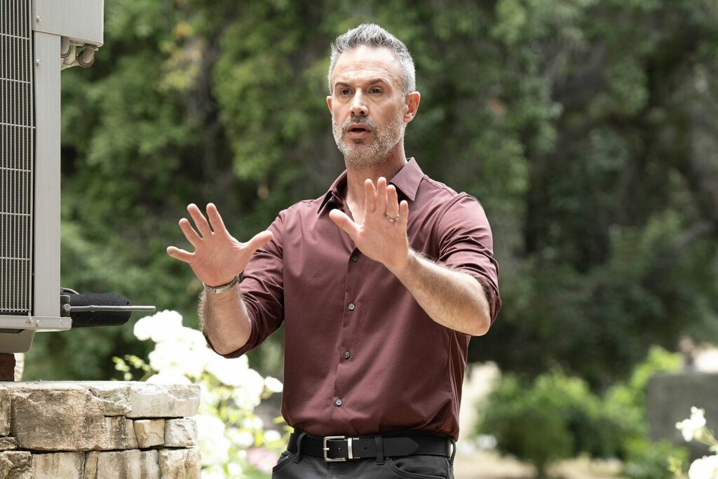En réalité, on va dire que cela démarre plutôt bien. L’acteur principal s’en tire pas trop mal, Gabrielle Haugh est sexy, le décor est planté comme il se doit, le drone envahissant installe un certain suspense. Puis, une fois que la famille débarque, dont la femme de Thomas, incarnée par Monica Potter (Les Ailes de l’enfer, Martha, Frank, Daniel et Lawrence, Docteur Patch), qui retrouve alors Freddie Prinze Jr. près d’un quart de siècle après Folles de lui, la comédie involontaire démarre réellement. Les réactions, les échanges, les actes des personnages deviennent incompréhensibles, stupides et donc souvent hilarants de bêtise.